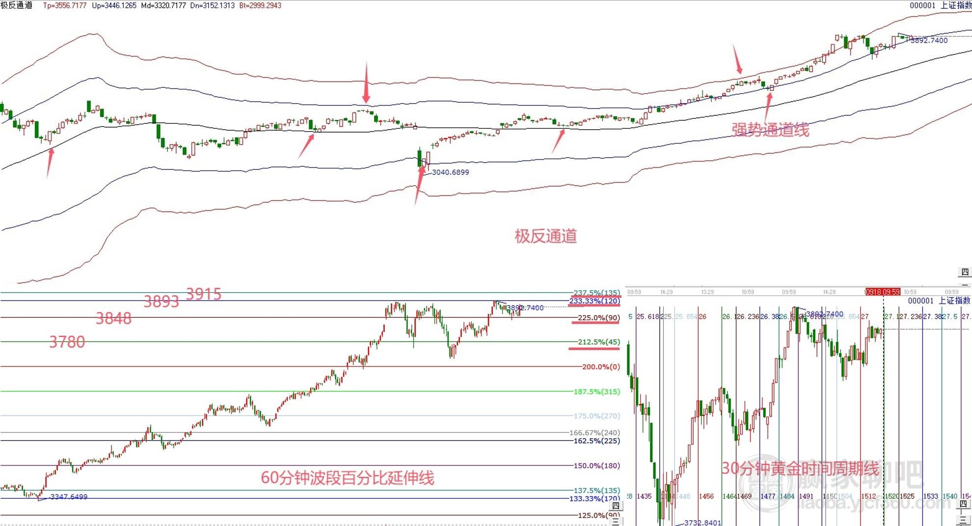 1、趋势:指数目前处于强势通道,近期下跌至强势通道线3855.29点支撑附近,关注支撑是否守住,根据规则生命线上强势区域看多。