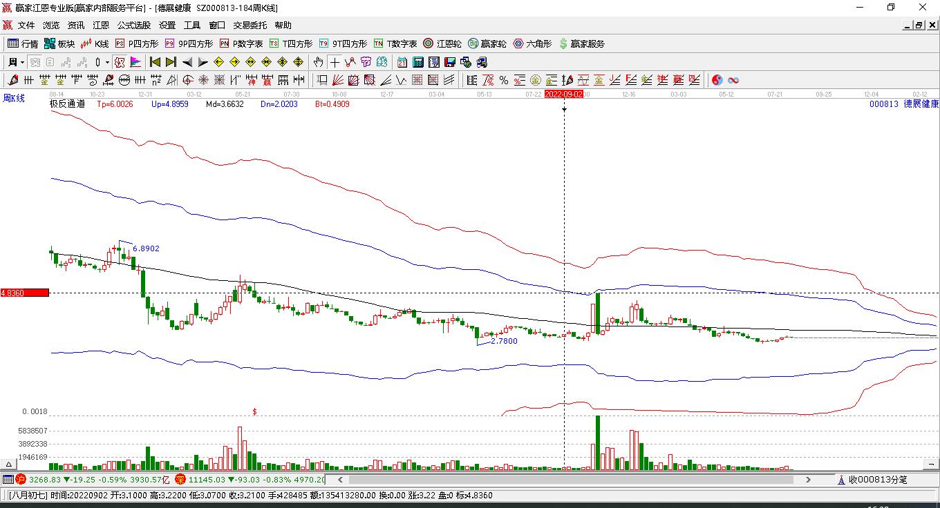 000813德展健康根据赢家江恩极反通道趋势工具展示,上方压力位4.2289,下方支撑位3.2512。000813德展健康处于赢家江恩多头中期回调形态,9月23日发出江恩筑底信号后,经过31日,今日形