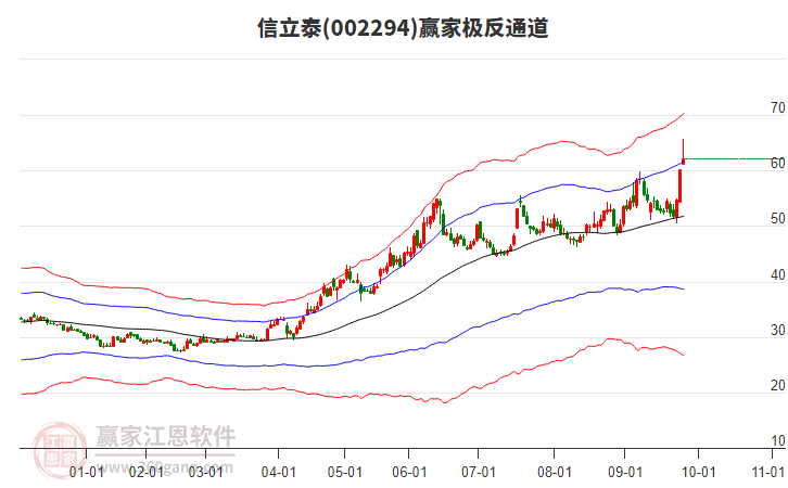 依据赢家江恩系统趋势工具极反通道分析判断信立泰002294运行在生命线以下弱势区域,根据规则该股短线轻仓参与,股价跌至弱势外轨线后波段再结合其它工具信号建仓。应用口诀是:生命线上强势走,生命线下难抬头;红黄两条外轨线,压力支撑显势头。