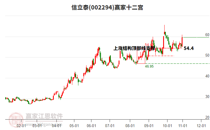 002294信立泰根据赢家江恩极反通道趋势工具展示,上方压力位65.4318,下方支撑位54.6751。002294信立泰处于赢家江恩多头次主线形态,10月28日发出江恩筑底信号后,经过3日,今日形成
