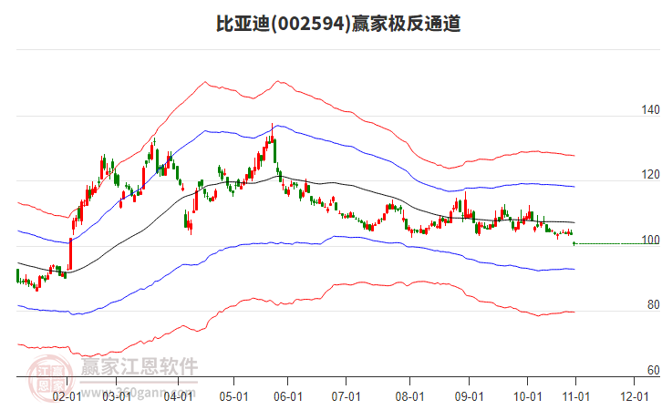 依据赢家江恩系统趋势工具极反通道分析判断比亚迪002594运行在生命线以上强势区域,根据规则该股可短线、波段结合操作;结合物极必反的原理通过分钟图做盘中差价,应用口诀是:生命线上强势走,生命线下难抬头;红黄两条外轨线,压力支撑显势头。