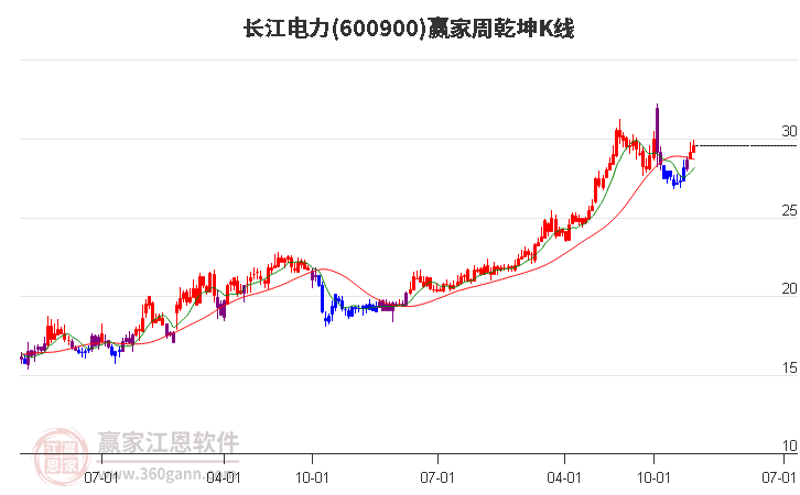 600900长江电力处于赢家江恩空头主线形态,今日重心持续下移,短期延续下跌趋势,4月8日发出中期江恩筑底信号后,经过160日,今日形成中期筑顶信号,注意风险规避。600900长江电力根据赢家江恩极反