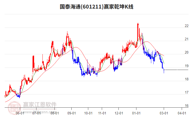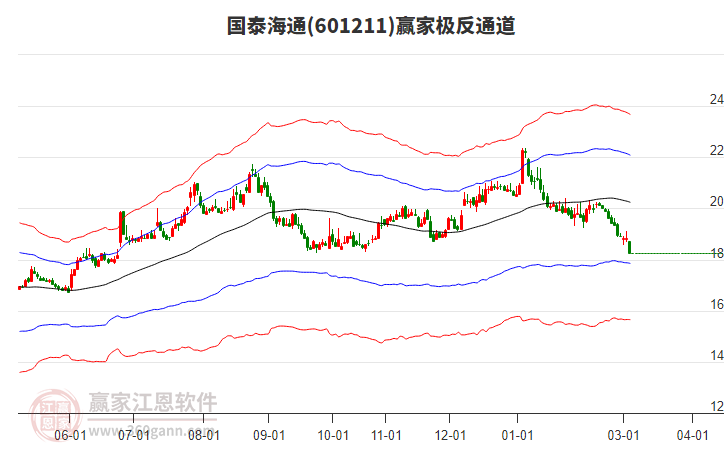 国泰海通(601211)近期高点20.25持续下跌,涨幅回落10.96%,下穿黄金价格延伸线工具关键点位18.38元
