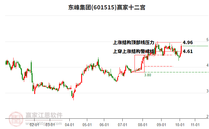 东峰集团根据赢家江恩极反通道趋势工具展示,上方压力位5.338,下方支撑位4.5741。东峰集团处于赢家江恩多头主线形态,从9月29日形成底分型后持续上攻,今日突破前高形成初次江恩筑底信号,中长期多头