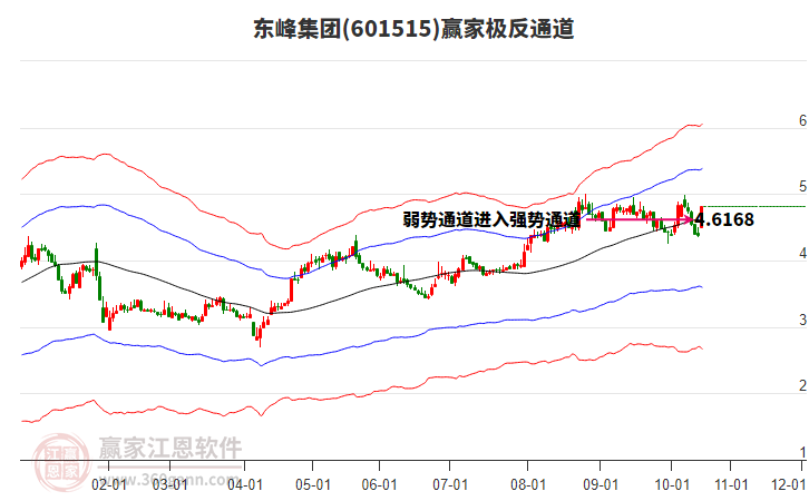 601515东峰集团目前涨停,与所属行业概念下股票形成联动效应。601515东峰集团截止目前突破极反通道生命线,根据赢家江恩极反通道趋势工具展示,上方压力位5.385,下方支撑位4.6168。东峰集团