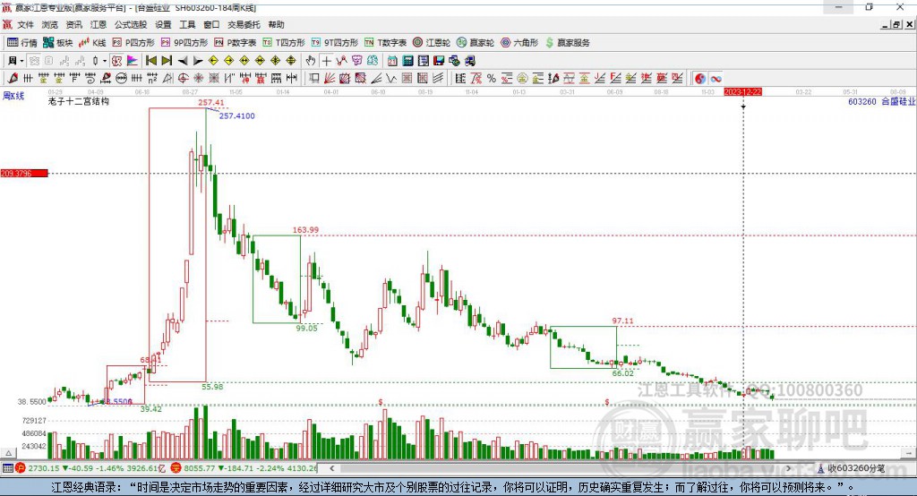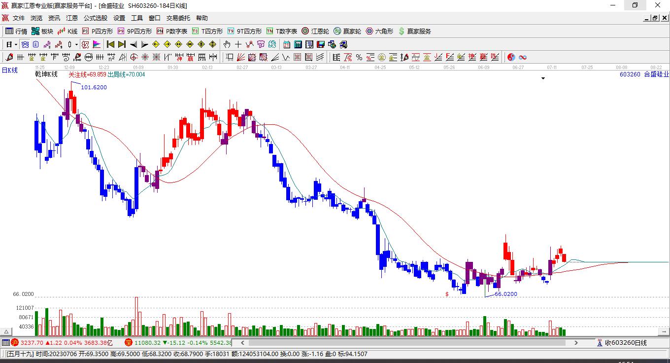 合盛硅业(603260)处于赢家江恩空头中期反弹形态,9月22日发出江恩筑顶信号后,经过45日,今日再次发出江恩底分型并发出江恩筑底信号,中期多头趋势延续,但长期处于下跌中。合盛硅业今日低开,截止目前