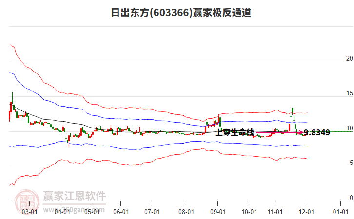 目前日出东方603366最高价10.49挑战了赢家极反通道工具生命线,受到生命线强力压制,最终收盘停留在在生命线与蓝色下轨线上方的弱势通道区域。日出东方603366近10个交易日涨幅4.88%。